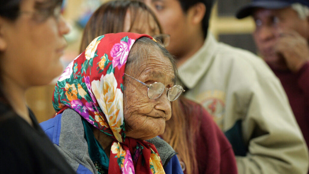 Elsie Werito, 84, a member of the To’hajiilee Chapter of the Navajo Nation, waits in line to cast her ballot on Nov. 2, 2004. Werito said she has been voting all her life and has never missed an election. (Photo by Rick Scibelli/Getty Images)