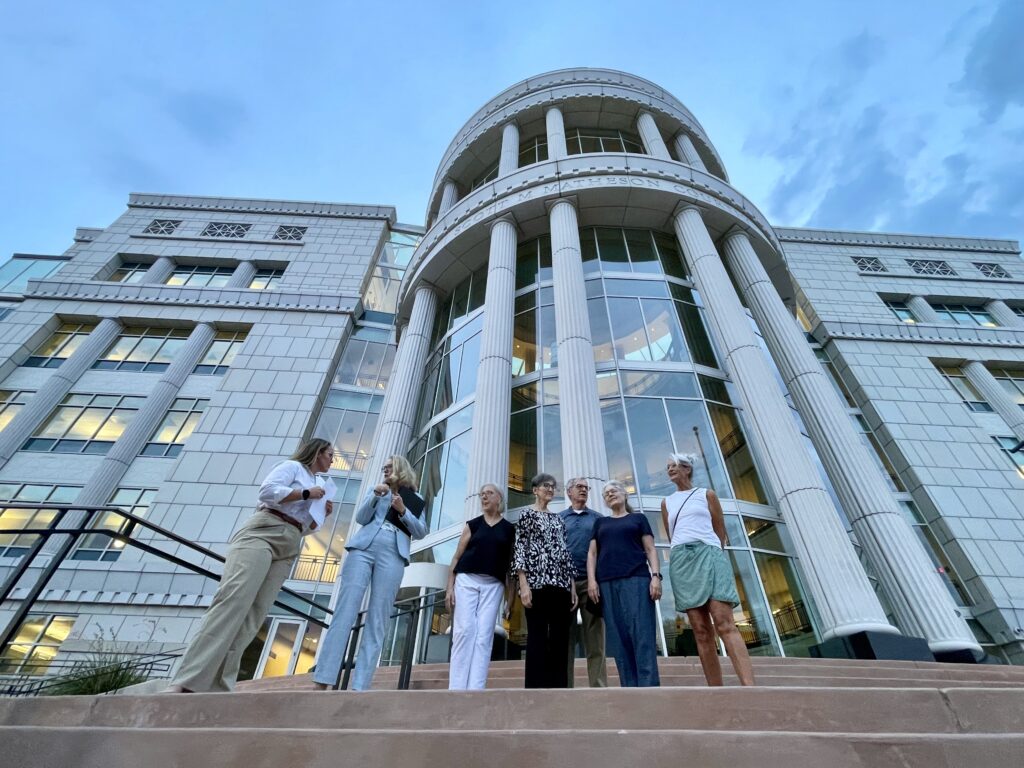 Plaintiffs in an anti-gerrymandering lawsuit hold a news conference outside the Matheson Courthouse in downtown Salt Lake City on Aug. 25, 2025. (Katie McKellar/Utah News Dispatch)