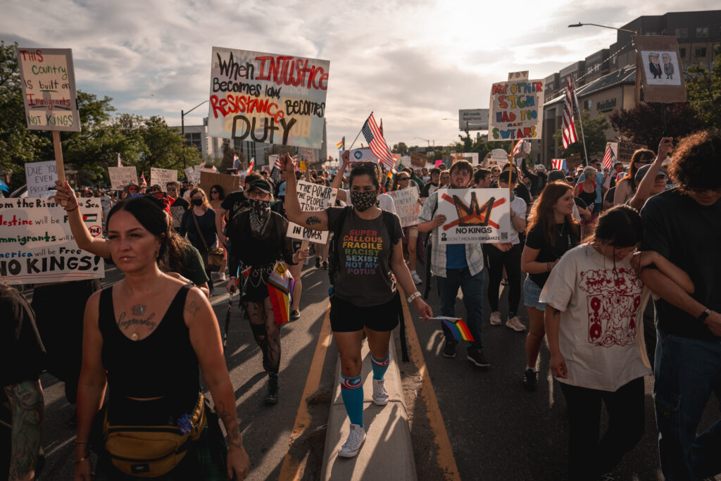 People take part in the “No Kings” protest in Salt Lake City on Saturday, June 14, 2025. (Photo by Spenser Heaps for Utah News Dispatch)