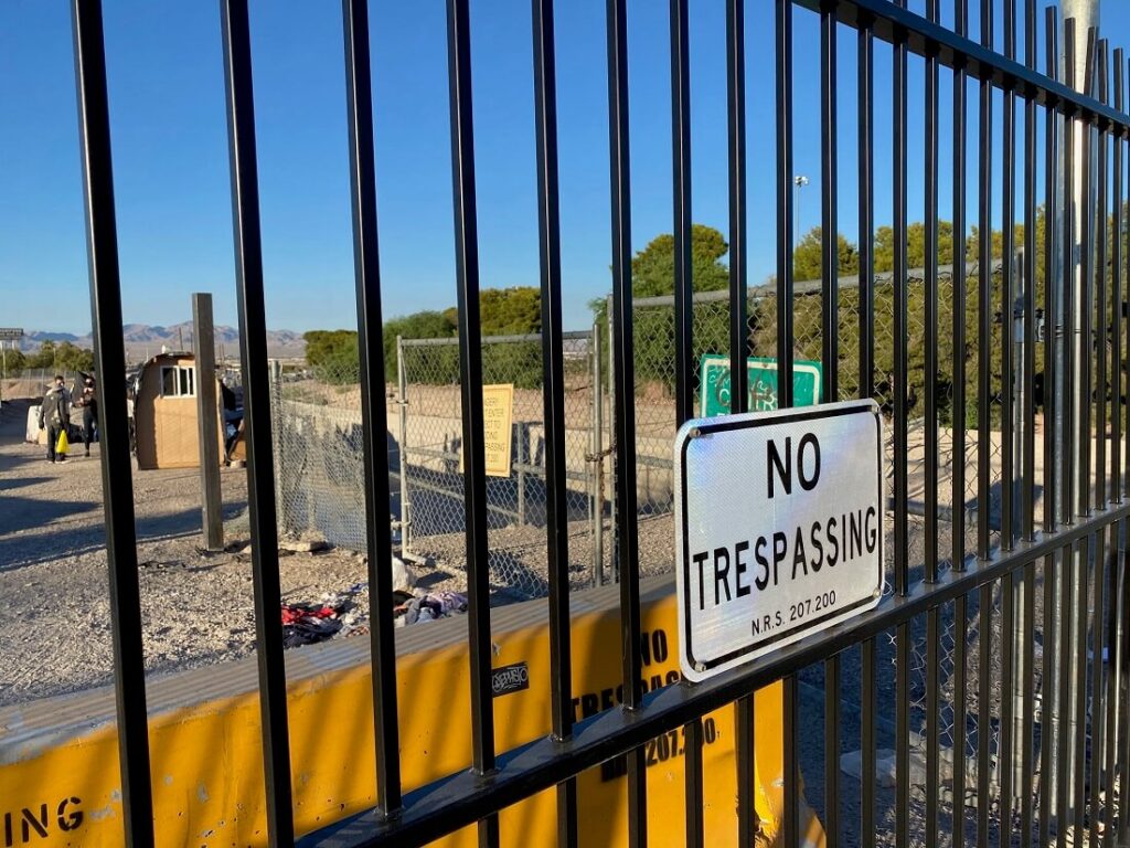 Barricade set up at a homeless encampment by the City of Las Vegas. (Michael Lyle/Nevada Current)
