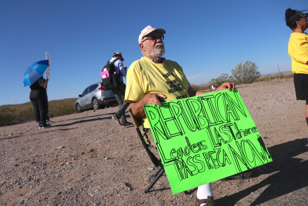 Don Meaders traveled from Albuquerque to protest in Las Cruces on Wednesday, Aug. 21, 2024. (Danielle Prokop/Source NM)