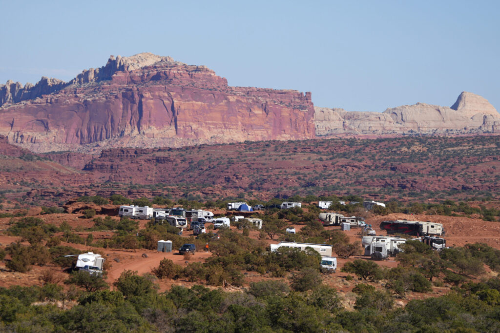People camp on public lands on Oct. 13, 2023 just outside Capitol Reef National Park, Utah. Capitol Reef is the national park most affected by Utah’s biggest regional haze polluters. (Photo by George Frey/Getty Images)