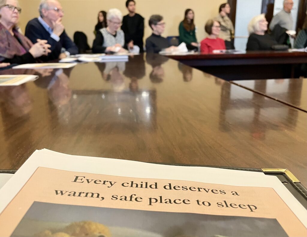 A new report on child homelessness in Utah by the Crossroads Urban Center sits on a table during an event where faith leaders and advocates gathered at the Utah Capitol on Jan. 24, 2025. (Katie McKellar / Utah News Dispatch)