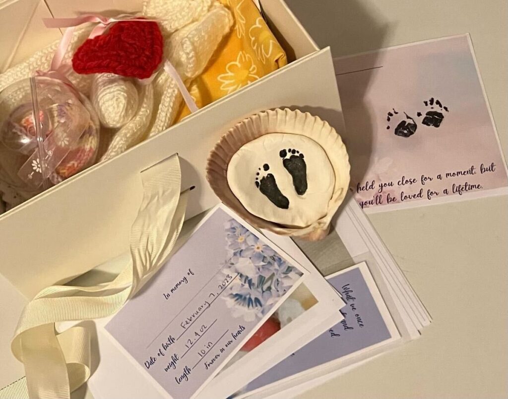 A collection of mementos, including footprints and handprints, were provided by a hospital in Richmond, Virginia, to Kelly Shannon of Alabama after she had to terminate a pregnancy because of fatal anomalies. (Courtesy of Kelly Shannon)