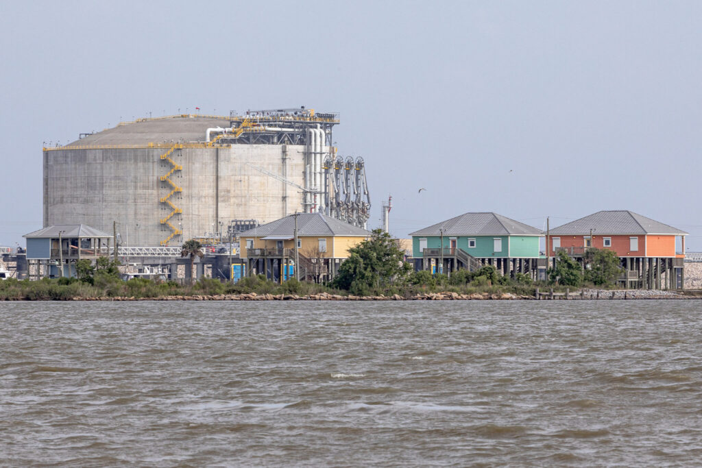 Residences stand in front of a Venture Global LNG storage tank in Cameron, Louisiana. (Getty Images)