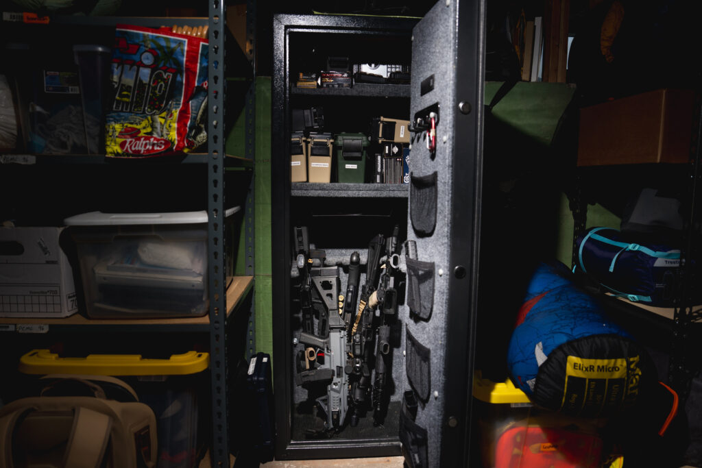 Firearms and ammunition are stored inside a safe at a Salt Lake City resident’s home on Tuesday, Sept. 10, 2024. (Photo by Spenser Heaps for Utah News Dispatch)