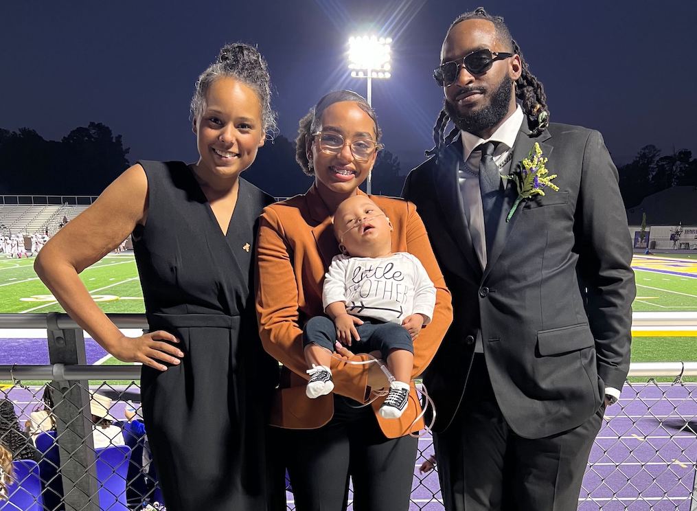 Charlotte Cravins, left, attends an event with her husband, Calvin Bell, and their children, infant son Landry Bell and daughter Lyric Bell. Landry was born with Down syndrome and is blind in one eye. Charlotte is worried that a lawsuit challenging part of a 50-year-old federal disability rights law could remove protections for children with disabilities, like Landry. (Courtesy of Charlotte Cravins)