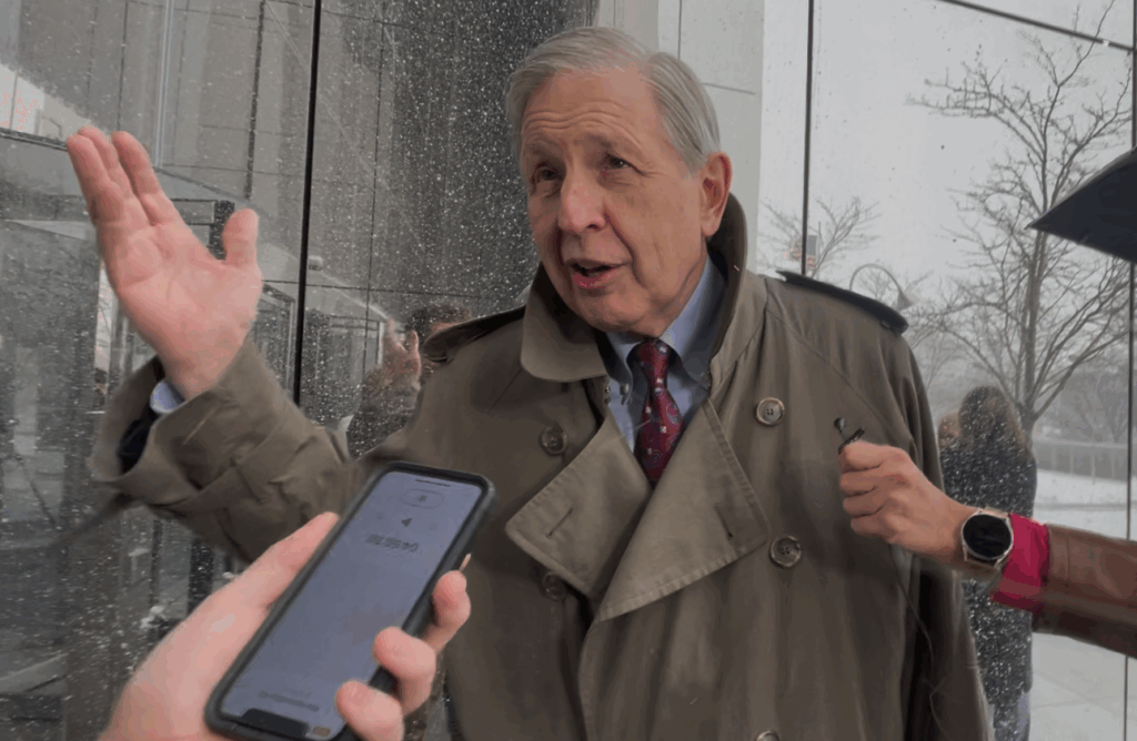 Attorney Gene Schaerr representing the plaintiffs in the federal case seeking to overturn Utah’s court-ordered congressional map speaks to reporters outside the Orrin G. Hatch U.S. District Courthouse in Salt Lake City on Feb. 18, 2026. (Katie McKellar/Utah News Dispatch)