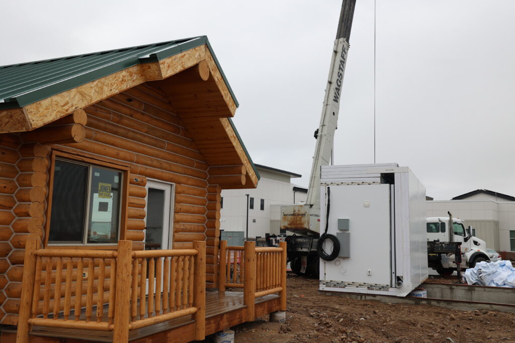 New tiny home being installed next to tiny cabin under construction on Friday, Feb. 13, 2026 (Photo by Will Ruzanski for Utah News Dispatch)