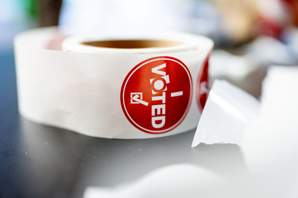 An “I Voted” stocker is pictured at the Salt Lake County Government Center in Salt Lake City on Election Day, Tuesday, Nov. 5, 2024. (Photo by Spenser Heaps for Utah News Dispatch)