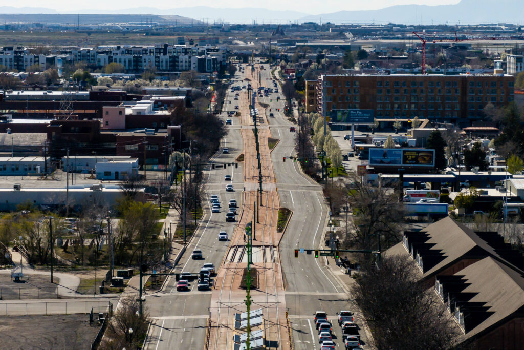 North Temple cuts through the Fairpark neighborhood of Salt Lake City on Wednesday, April 3, 2024. (Photo by Spenser Heaps for Utah News Dispatch)