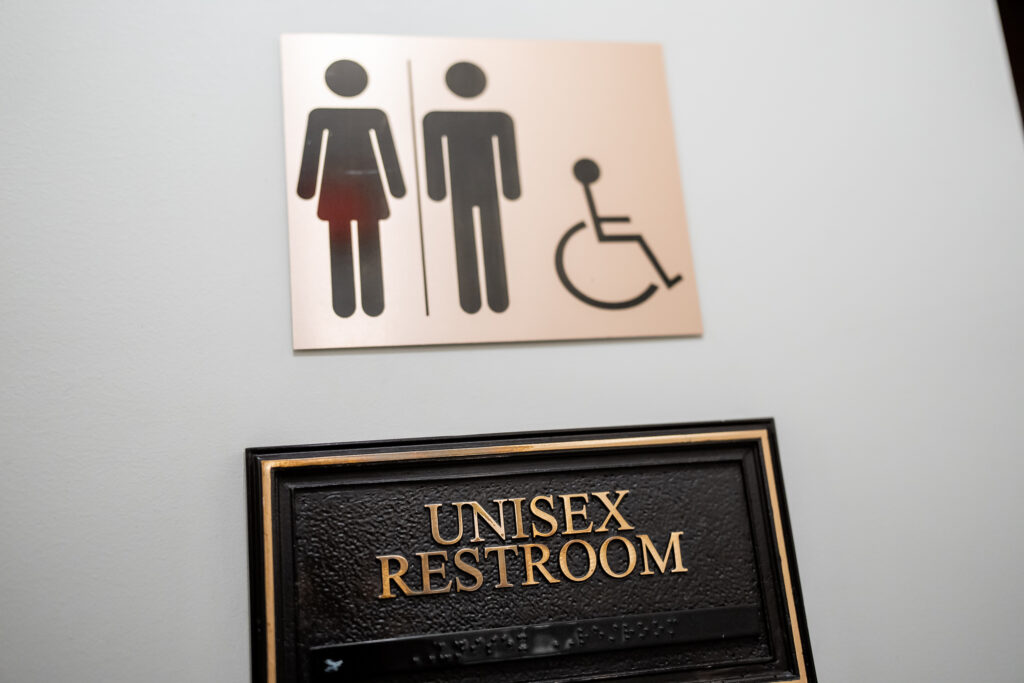 The sign for a unisex bathroom at the Capitol in Salt Lake City is pictured on Tuesday, Jan. 16, 2024. (Photo by Spenser Heaps for Utah News Dispatch)