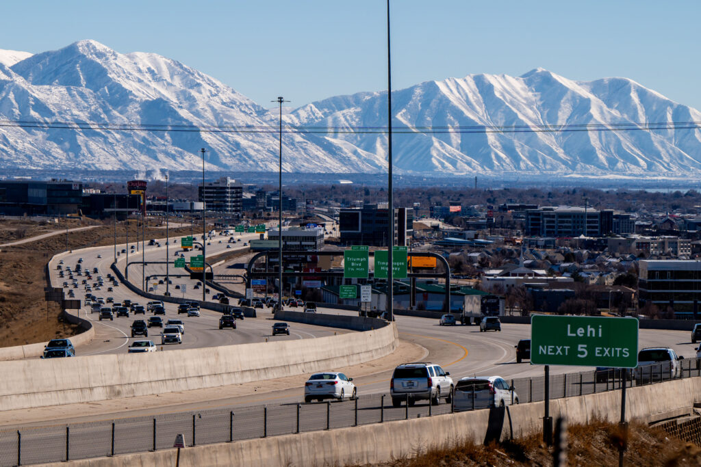 I-15 near Point of the Mountain in Lehi is pictured on Sunday, Feb. 4, 2024. (Photo by Spenser Heaps for Utah News Dispatch)