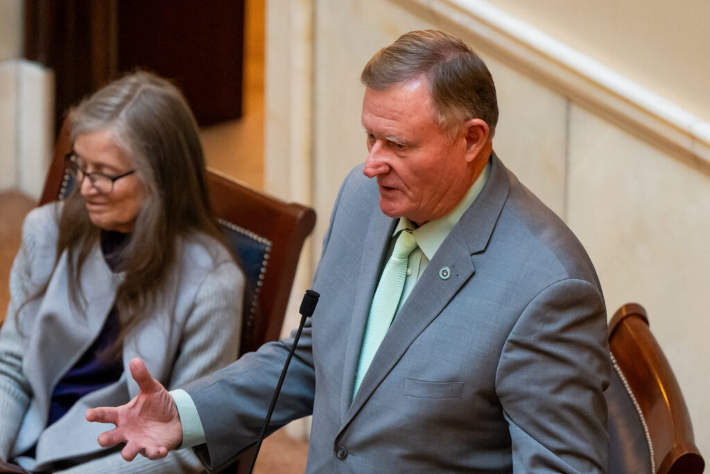Sen. Evan Vickers, R-Cedar City, is pictured on the first day of the legislative session at the Capitol in Salt Lake City on Tuesday, Jan. 16, 2024. (Photo by Spenser Heaps for Utah News Dispatch)