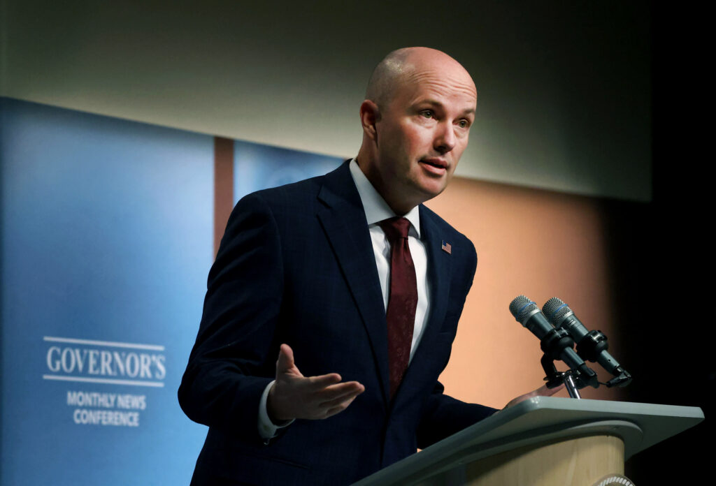 Gov. Spencer Cox speaks during his monthly news conference broadcast by PBS Utah from the Eccles Broadcast Center in Salt Lake City on Thursday, Jan. 16, 2025. (Pool photo by Laura Seitz/Deseret News)