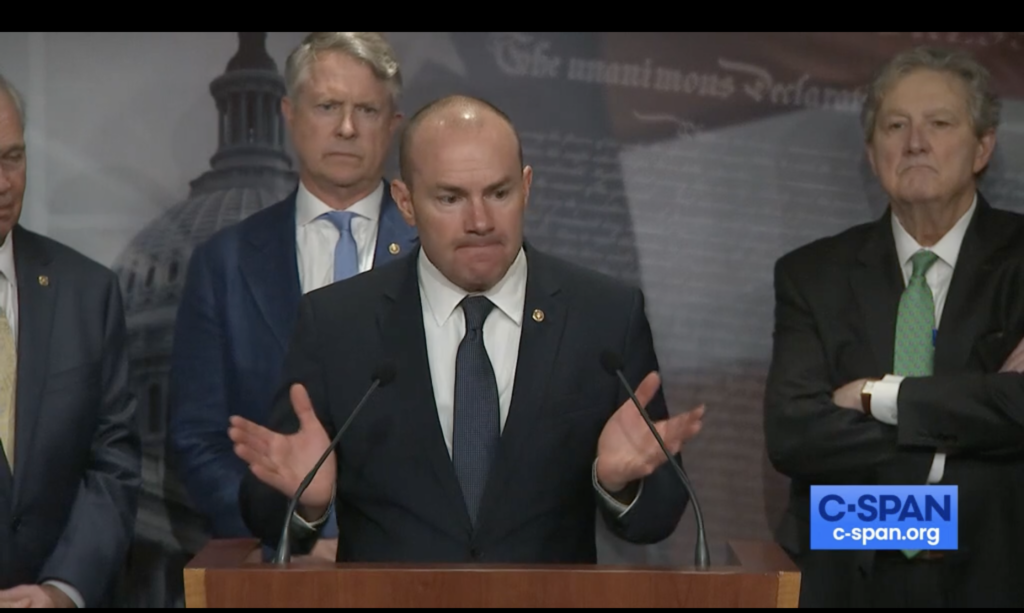 Sen. Mike Lee, a Utah Republican, speaks at a Senate Republican press conference on April 9, 2024. (C-SPAN screenshot)
