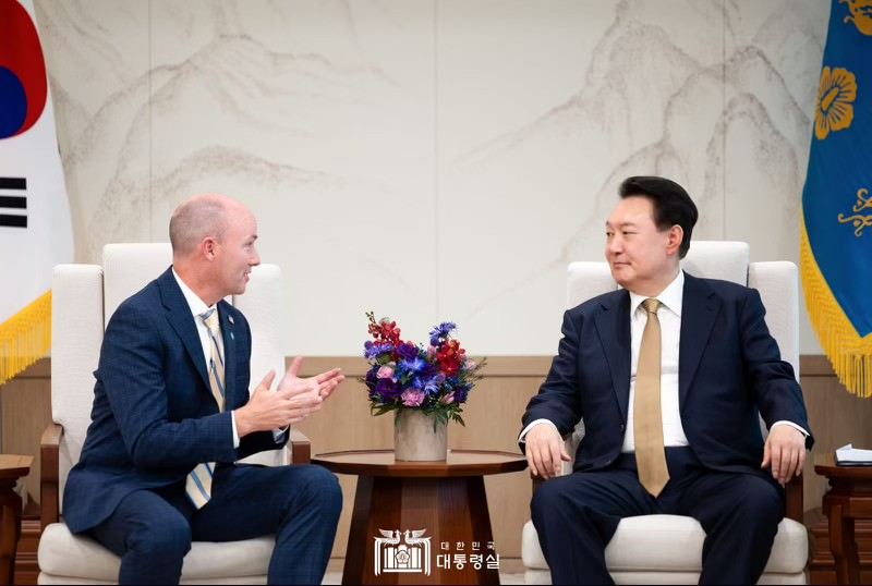 Utah Gov. Spencer Cox meets with South Korean President Yoon Suk Yeol on Sept 27, 2024 (Courtesy of the Governor’s Office)