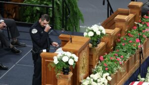 That’s how Utah Gov. Spencer Cox said he imagined it during the sergeant’s public funeral Friday, in front of about 3,000 people at Utah State University’s Dee Glen Smith Spectrum arena. Cox never met Sorensen, but officers from the small Tremonton-Garland Police Department can attest to it.
