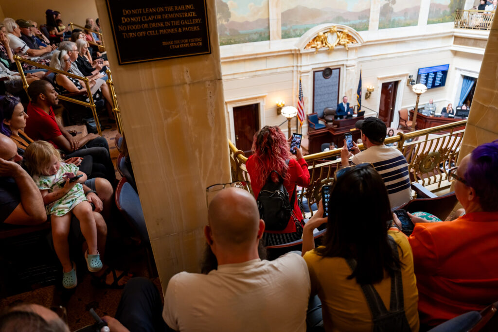 People watch from a packed gallery as the Senate discusses a proposed constitutional amendment related to citizen initiatives during a special legislative session at the Capitol in Salt Lake City on Wednesday, Aug. 21, 2024. (Photo by Spenser Heaps for Utah News Dispatch)