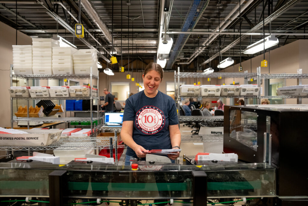 Election workers process ballots at the Davis County Administrative Building in Farmington on Election Day, Tuesday, Nov. 5, 2024. (Photo by Spenser Heaps for Utah News Dispatch)