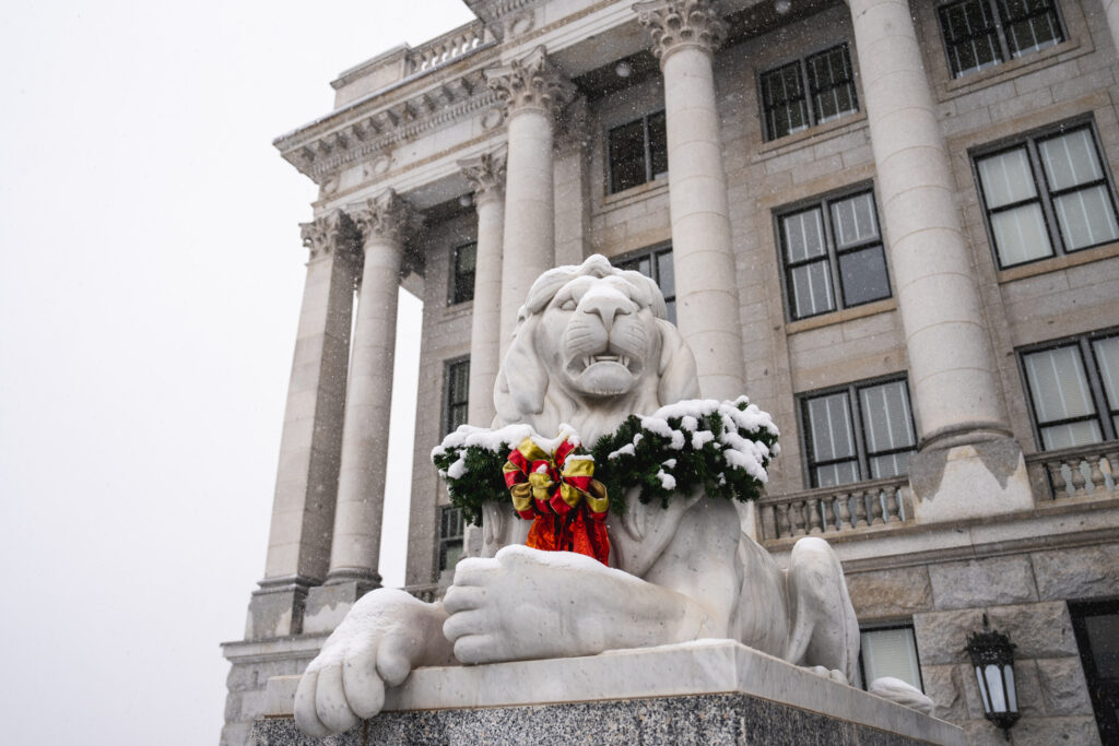 Snow falls at the Capitol in Salt Lake City on Friday, Dec. 13, 2024. (Photo by Spenser Heaps for Utah News Dispatch)