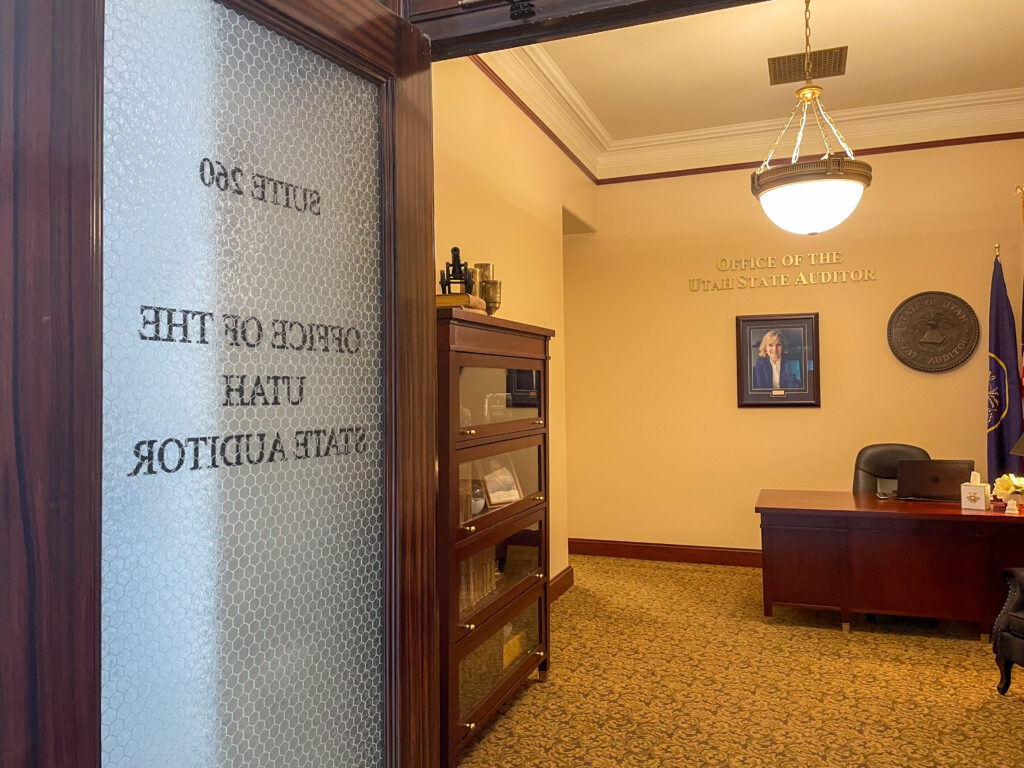Utah Auditor Tina Cannon’s office in the Utah State Capitol in Salt Lake City on Friday, March 7, 2025. (Katie McKellar/Utah News Dispatch)