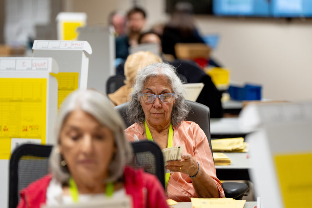 Election workers process ballots at the Salt Lake County Government Center in Salt Lake City on Election Day, Tuesday, Nov. 5, 2024. (Photo by Spenser Heaps for Utah News Dispatch)
