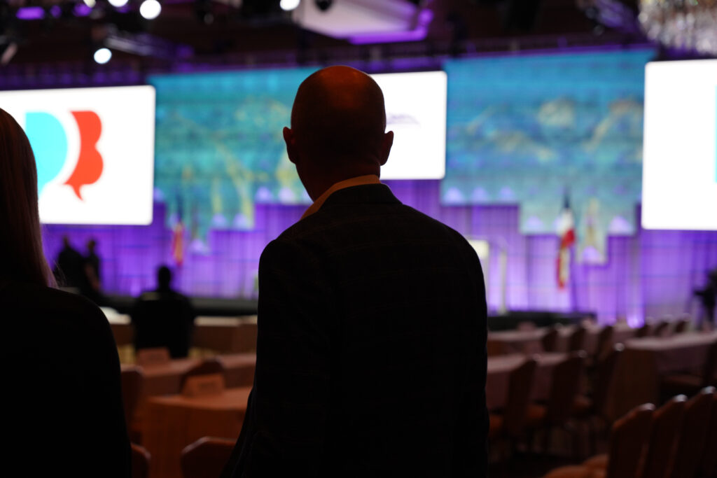 Utah Gov. Spencer Cox looks toward the stage for the National Governors Association’s summer meeting at the Grand America Hotel in Salt Lake City on July 11, 2024. (Courtesy of the Utah Governor’s Office)