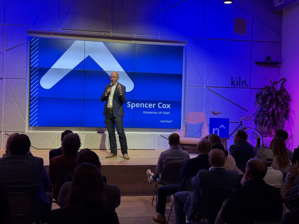 Utah Gov. Spencer Cox speaks at the launch of the Nucleus Institute on Aug. 27, 2025 (Alixel Cabrera/Utah News Dispatch)