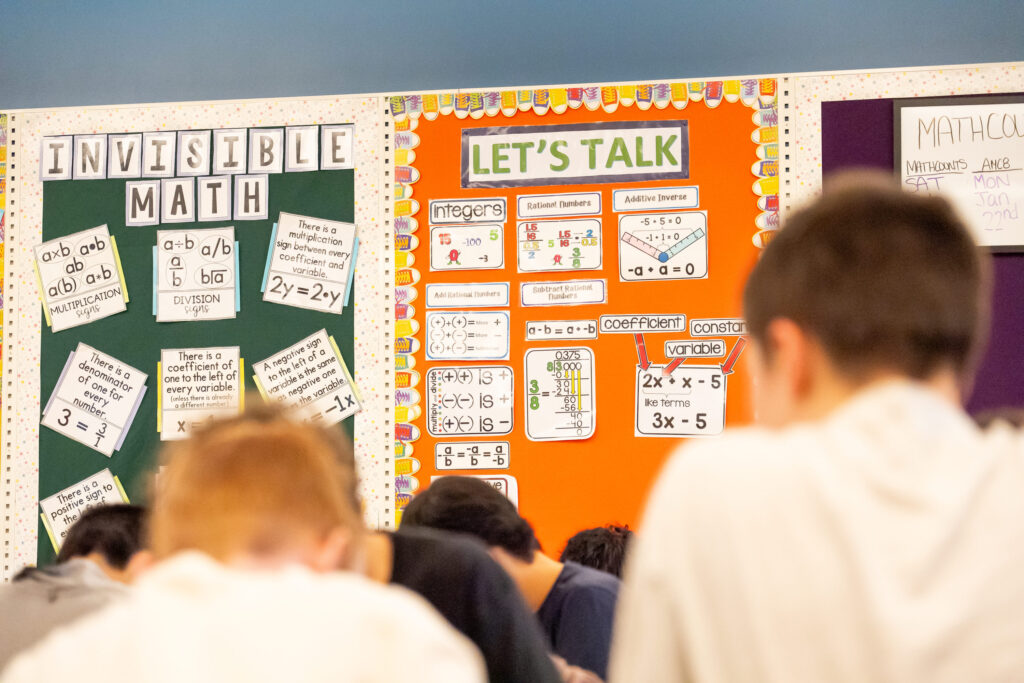 Students work in a math class at Wasatch Junior High School in Salt Lake City on Tuesday, March 12, 2024. (Photo by Spenser Heaps for Utah News Dispatch)