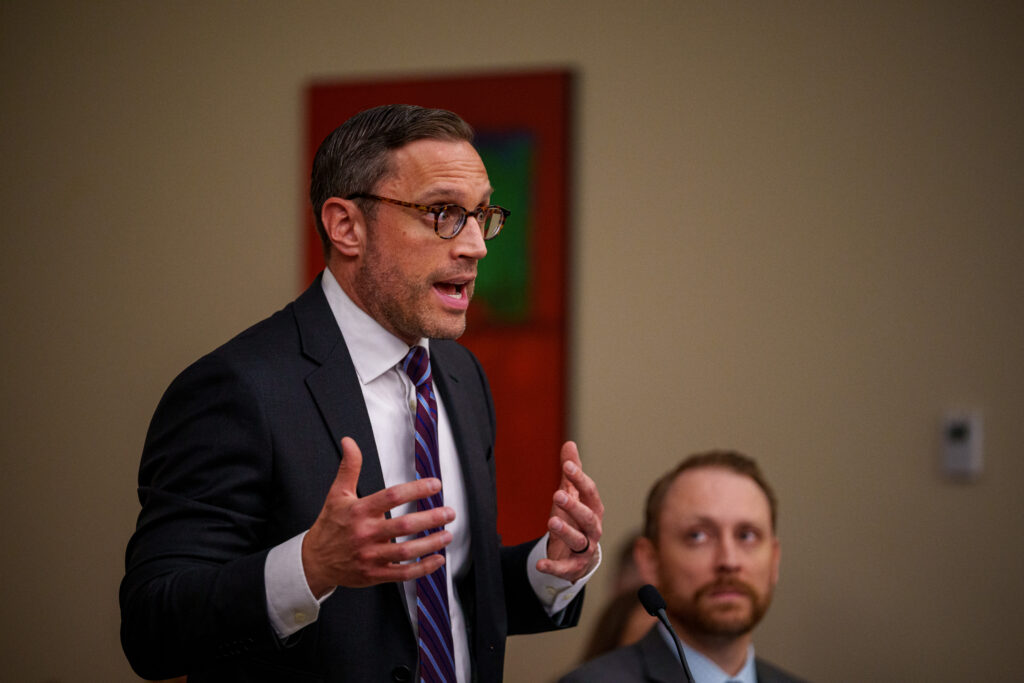 Tyler Green, an attorney representing the Utah Legislature, as Judge Dianna Gibson holds a hearing on UtahÕs congressional maps process, in Salt Lake City on Friday, Aug. 29, 2025. Judge Gibson previously ruled Ñ based on a decision last year by the Utah Supreme Court Ñ that the Legislature had violated votersÕ constitutional right to make laws when legislators repealed Proposition 4, the citizen-passed Better Boundaries initiative. (Pool photo by Trent Nelson/The Salt Lake Tribune)