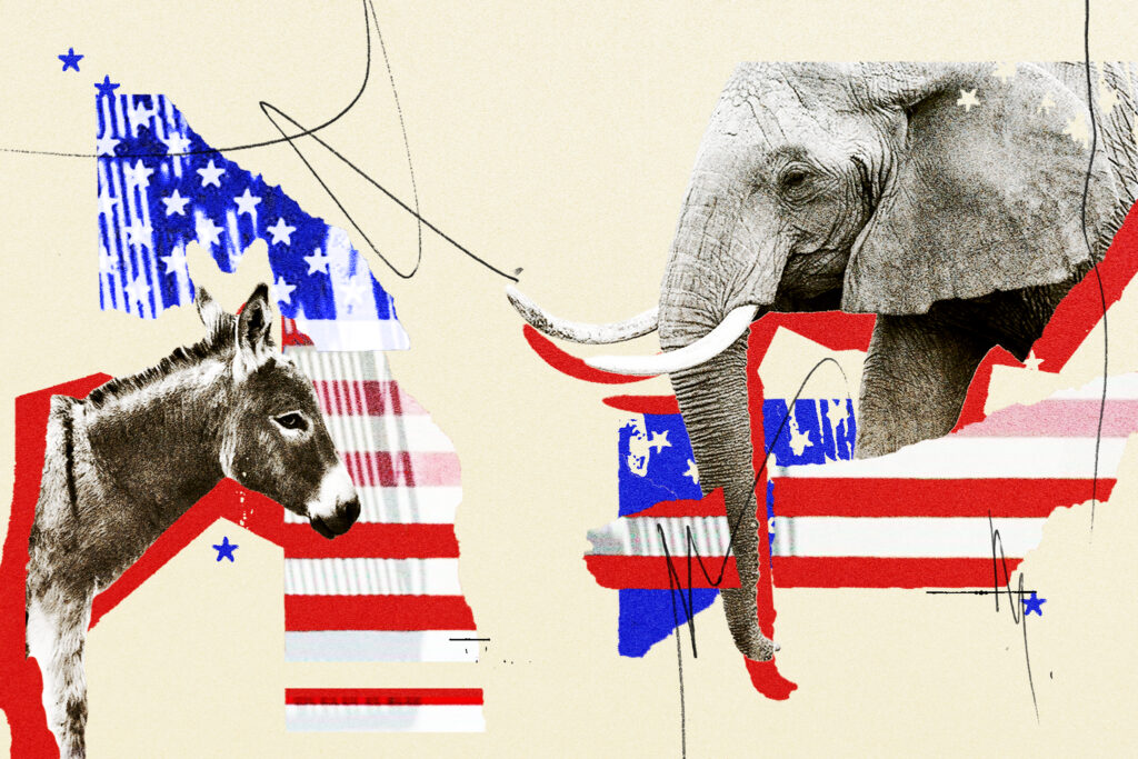 Both the Utah Republican Party and the Utah Democratic Party will be holding their 2024 nominating conventions on Saturday. (Illustration by Alex Cochran for Utah News Dispatch)