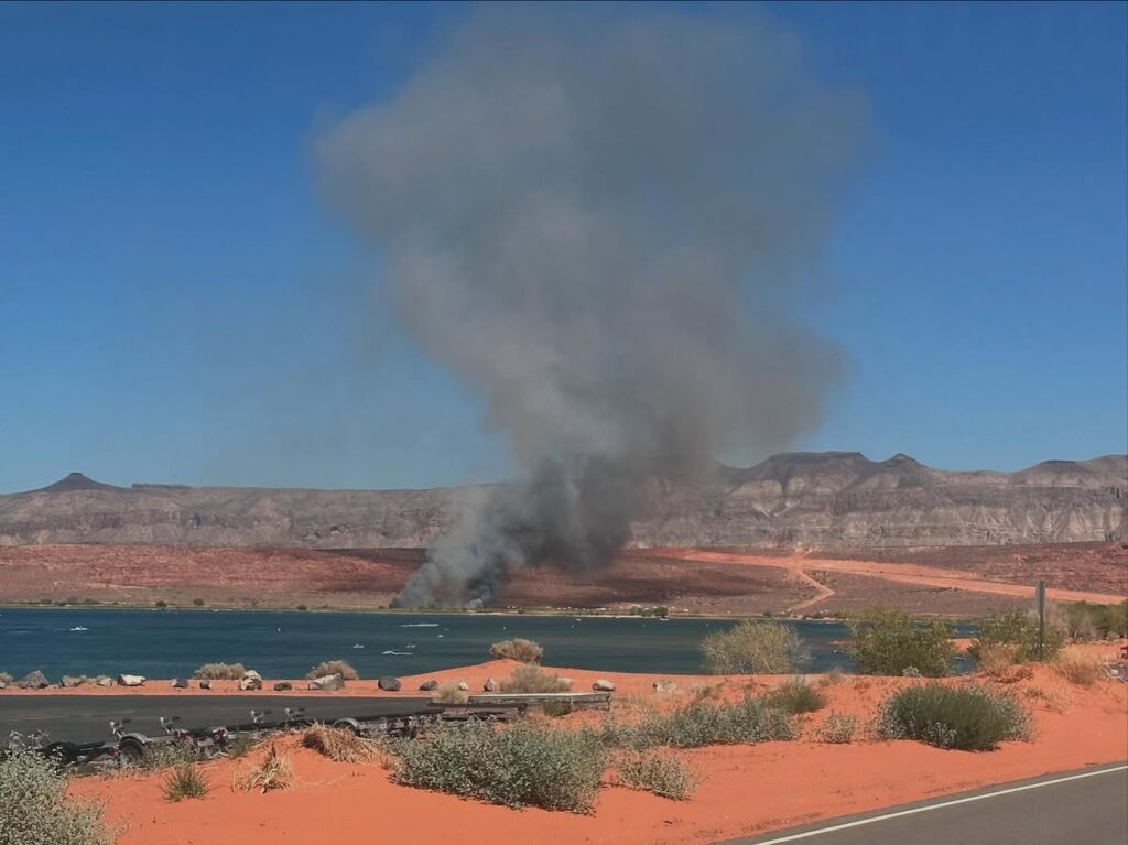 A fire burns in Sand Hollow State Park after a man abandoned a burning ATV on Saturday, Aug. 2, 2025. (Photo courtesy of Hurricane Valley Fire and Rescue)